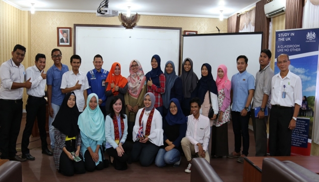 Foto Bersama – Perwakilan Kedutaan Besar Inggris dan Alumni Chevening foto Bersama dengan peserta sosialisasi Beasiswa Chevening usai kegiatan di ruang rapat besar gedung Babel VI Kampus Terpadu Universitas Bangka Belitung (UBB), Senin (30/07/2018) siang.