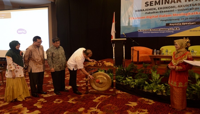 Gubernur mengemukakan hal itu ketika membuka resmi Seminar Nasional Manajemen, Ekonomi, Akuntansi Bangka Belitung (SMEABB) 1 Tahun 2018 dengan tema ‘Ekonomi Digital dalam Meningkatkan Daya Saing Daerah’ di Hotel Swiss-Belhotel, Pangkalpinang.