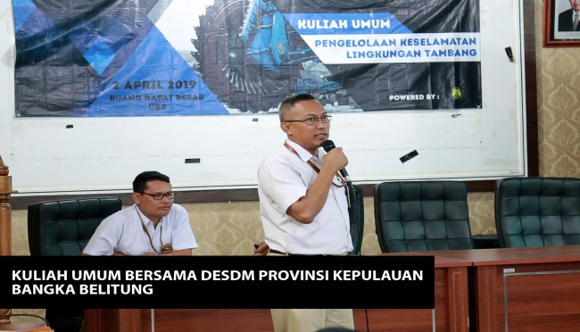 Kuliah umum tersebut menghadirkan Enam narasumber dari DESDM Kepulauan Bangka Belitung. Enam narasumber tersebut, yakni ahmad hilwansyah ST, Dodi hendrasukmana ST, Pangestu Budi ST, Deni saputra ST, Muhammad rahadian ST, dan Prihatini Dharmaputri ST.