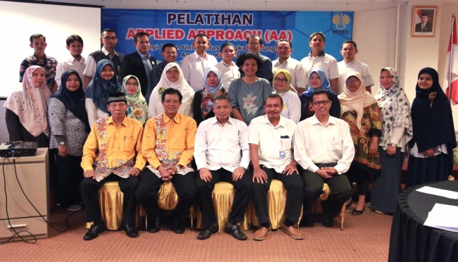 Wakil Rektor I UBB, Dr. Nizwan Zukhri, SE., MM., dan Wakil Rektor III UBB, Dr. Sucipto, MT., foto bersama dengan para narasumber dan peserta Pelatihan Applied Approach (AA) Angkatan III Tahun 2019, bertempat di SUN Hotel Pangkalpinang, Senin 8/4 pagi.