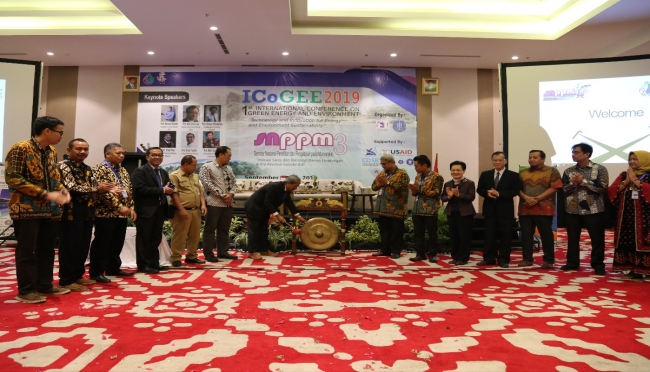 ICoGEE resmi dibuka oleh Rektor UBB Dr Ir Muh Yusuf MSi, didampingi Dekan Fakultas Teknik UBB Wahri Sunandar ST. M.Eng, lima profesor pembicara utama, Ketua Panitia ICoGEE R Priyoko Prayitnoadi PhD, moderator Dr Edy Nur Tjahya, Direktur Center for Delevopment of Sustainable Region Dr Rachmawan, Wakil Rektor I UBB Dr Mizwan Zuhri, Wakil Rektor 2 UBB Dr Sri Rahayu, Wakil Rektor 3 UBB Dr Sucipto, Ketua Panitia SNPPM UBB Herman, dan wakil dari Pemda Provinsi Kepulauan Bangka Belitung.