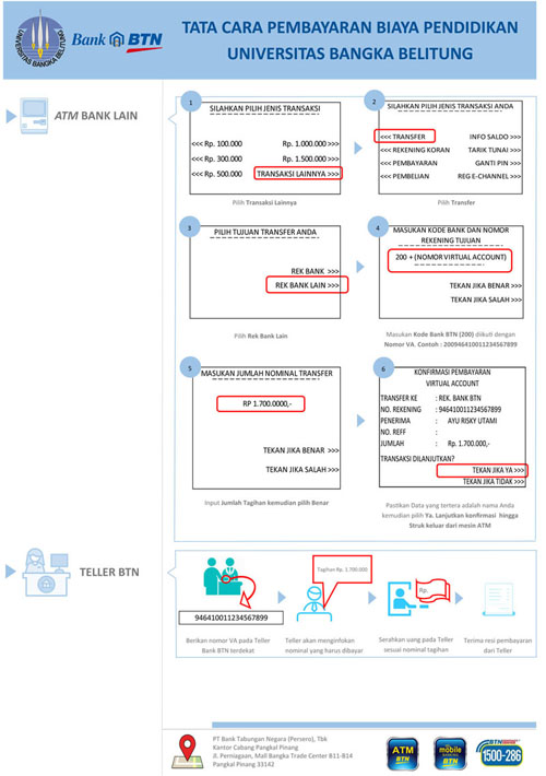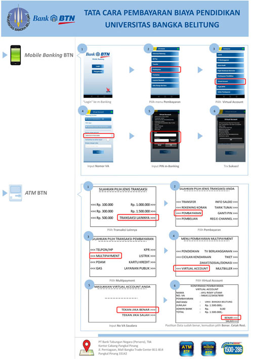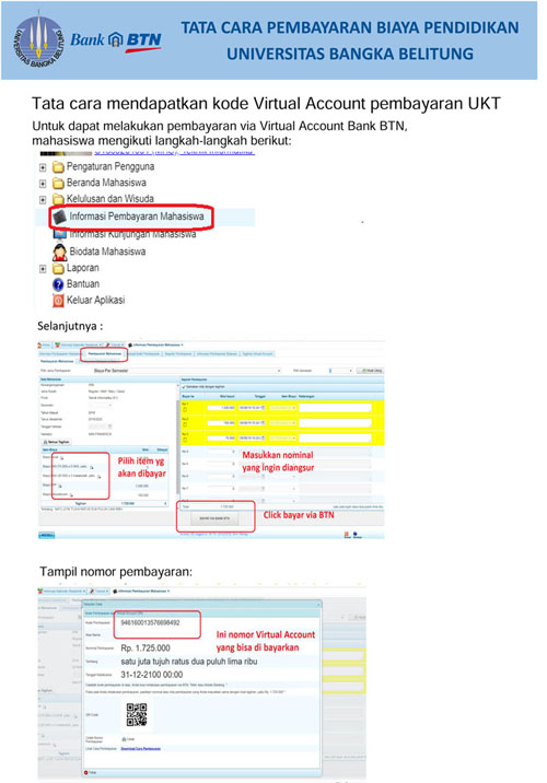 Pembayaran UKT Menggunakan Virtual Account Bank BTN sudah bisa dilakukan, Tata cara pembayaran Uang Kuliah Tunggal (UKT) dengan virtual Account :