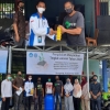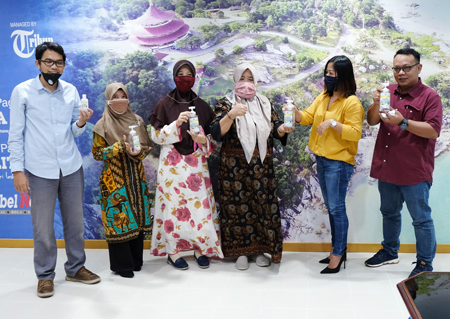 Univesitas Bangka Belitung menyerahkan handsanitizer kepada Bangka Pos di ruang rapat kantor Bangka Pos Group, Pangkalpinang, Rabu (13/5).